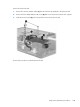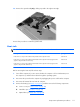 12. Lift the right side of the system board (1) until it rests at an angle.