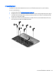 2. หันฝาปดดานลางเขาหาคุณ จากนั้นถอดสกรูยึดสามตัวที่อยูตรงกลางชองและสกรูอีกสองตัวที่ดานหนาของชอง (1) สก