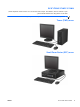 שינוי מבנה מתצורת מחשב שולחני לתצורת Tower ניתן להשתמש במחשב Ultra-Slim Desktopבתצורת כיוון towerבאמצעות מעמד towerהמצורף למחשב. .1 הסרת/ניתוק כל התקן אבטחה המונע את פתיחת המחשב. .2 הסר את כל המדיה הנשלפת ,כגון תקליטורים או כונני ,USB Flashמהמחשב. .3 כבה את המחשב כהלכה באמצעות מערכת ההפעלה ,ולאחר מכן כבה את ההתקנים החיצוניים. .4 נתק את כבל המתח משקע החשמל ,ונתק את ההתקנים החיצוניים.