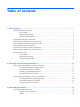 Table of contents 1 Product features ............................................................................................................... 1 Standard configuration features ................................................................................................. 1 Tower (TWR) ............................................................................................................ 1 Small Form Factor (SFF) .................................................................................