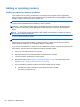 3. Replace the battery (see Inserting or removing the battery on page 60) and the service door (see