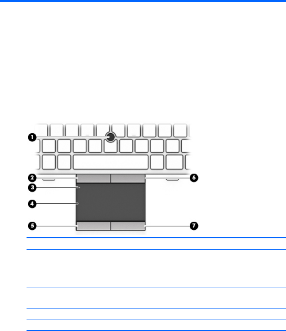 (4) Područje dodirne pločice (Touchpada) Pomiče pokazivač i bira ili aktivira stavke na zaslonu.