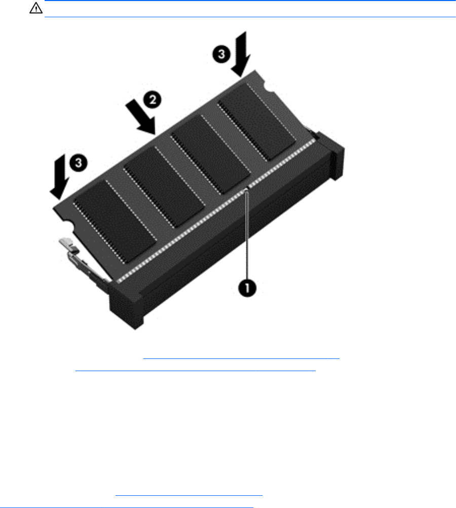 c. Lagano pritisnite memorijski modul prema dolje (3), pritišćući lijevi i desni rub memorijskog