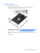 5. Atbrīvojiet četras cietā diska vāka skrūves (1). Pavelciet cietā diska auduma cilpu (2) augšup un