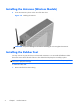 Installing the Antenna (Wireless Models) ▲ Screw the antenna in place on the rear of the thin client. Figure 1-5 Installing the antenna CAUTION: To prevent damage to the antenna mounting, do not overtighten the antenna. Installing the Rubber Feet You may want to use your thin client in a horizontal orientation. You can install self-adhesive rubber feet at the corners of the left side of the unit. The rubber feet help keep the unit safely in place.
