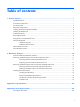 Table of contents 1 Product Features ............................................................................................................... 1 Standard Features .................................................................................................................... 1 Front Panel Components ........................................................................................................... 1 Top Components ............................................................................