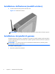 B Disposizioni di sicurezza Protezione del Thin Client Questi thin client sono progettati per garantire una chiusura con cavo di sicurezza. Questa chiusura con cavo impedisce la rimozione non autorizzata del thin client, così come il bloccaggio del compartimento di sicurezza. Per ordinare questa opzione, visitare il sito Web HP http://www.hp.com e cercare il modello specifico di thin client. 1. Localizzare lo slot della chiusura con cavo sul pannello posteriore. 2.