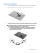 Näytön kääntämisen säätäminen Säädä kallistusta haluamaasi asentoon. Säätääksesi kallistuksen ylöspäin, pidä näytön yläosaa kahdella kädellä ja kierrä näyttöä ylöspäin ja eteenpäin. Säätääksesi kallistuksen alaspäin, pidä näytön yläosaa kahdella kädellä ja kierrä näyttöä taaksepäin ja alaspäin. Näytön kallistuskulma on 15 - 70 astetta. Taka-ja sivuosat Osa Kuvaus 1 Kaksoismikrofoniryhmä Integroitu näytön yläetulevyyn. 2 Verkkokamera Integroitu näytön yläetulevyyn.