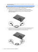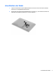 Position des Produktetiketts Auf dem Typenschild sind die Ersatzteilnummer, die Produktnummer und die Seriennummer des Monitors angegeben. Geben Sie diese Nummern an, wenn Sie sich wegen des Monitors mit HP in Verbindung setzen. Die Produktetiketten befinden sich auf der Rückseite des Bildschirms unter der Abdeckung des Kabels. Installieren eines Sicherungskabels Sie können den Monitor mit einem optionalen Kabelschloss, das von HP erhältlich ist, an einem festen Objekt sichern.