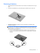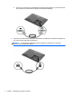 Placering af klassificeringsetiketten Mærkepladen på skærmen indeholder oplysninger om reservedelsnummeret, produktnummeret og serienummeret. Du kan få bruge for disse numre, hvis du kontakter HP vedrørende skærmmodellen. Mærkepladen er placeret på skærmens bagside, bag ved kabeldækslet. Sådan monteres en kabellås Du kan fastgøre skærmen til en fast genstand med en kabellås, der kan købes som ekstraudstyr hos HP.