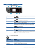 Valdymo skydas ir būsenos lemputės 2-1 Iliustracija Valdymo skydo ypatybės Savybė Apibūdinimas 1 Mygtukas Įjungta: įjungia arba išjungia spausdintuvą. 2 pagrindinis puslapis: grįžtama į ekraną Pradžia, kuris rodomas pirmąkart įjungus spausdintuvą. 3 Mygtukas Aukštyn: naudodami šį mygtuką naršykite meniu ir pasirinkite kopijų skaičių. 4 Belaidisbūsenos lemputė mėlyna lemputė nurodo belaidį ryšį. 5 Mygtukas Belaidis: Norėdami pamatyti belaidžio ryšio būklę ir meniu parinktis, spustelėkite mygtuką.