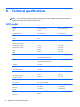NOTE: For the latest specifications or additional specifications on this product, go to