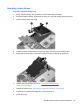 5. Patraukite plastikinį / apvalų fiksatorių (1) kompiuterio centro link ir atjunkite lustinių kortelių