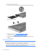 2. With the battery bay toward you, slide the service door release latch (1) to the left, remove the