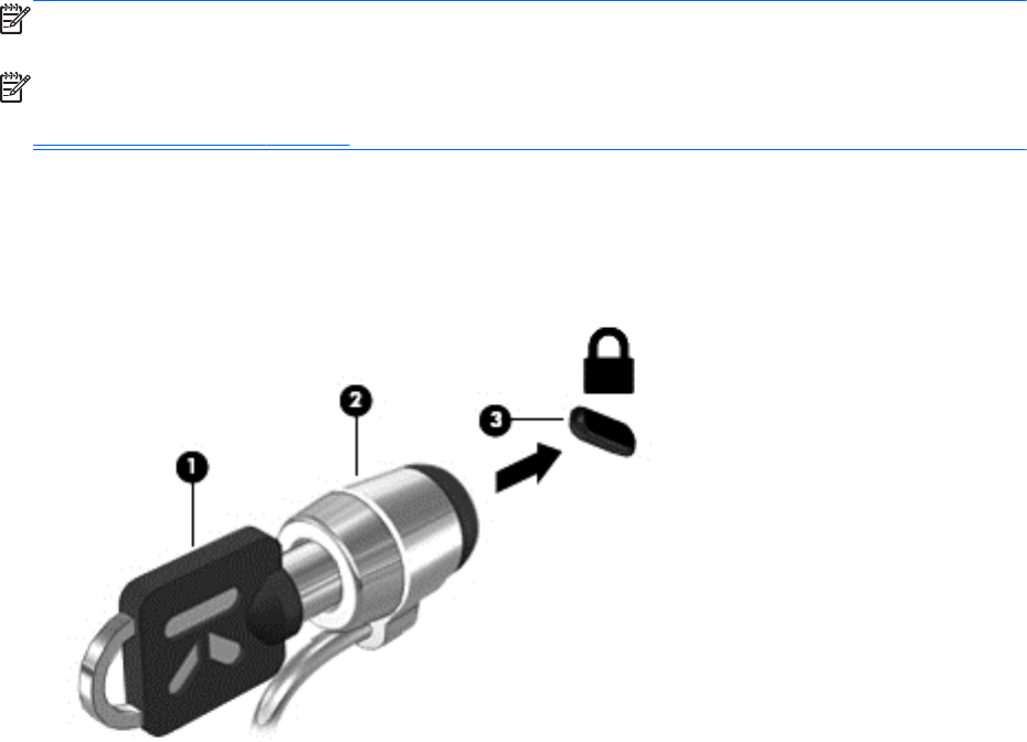 3. Кабель құлпын компьтердегі қауіпсіздік кабелінің ұясына (3) салыңыз да, сосын оны