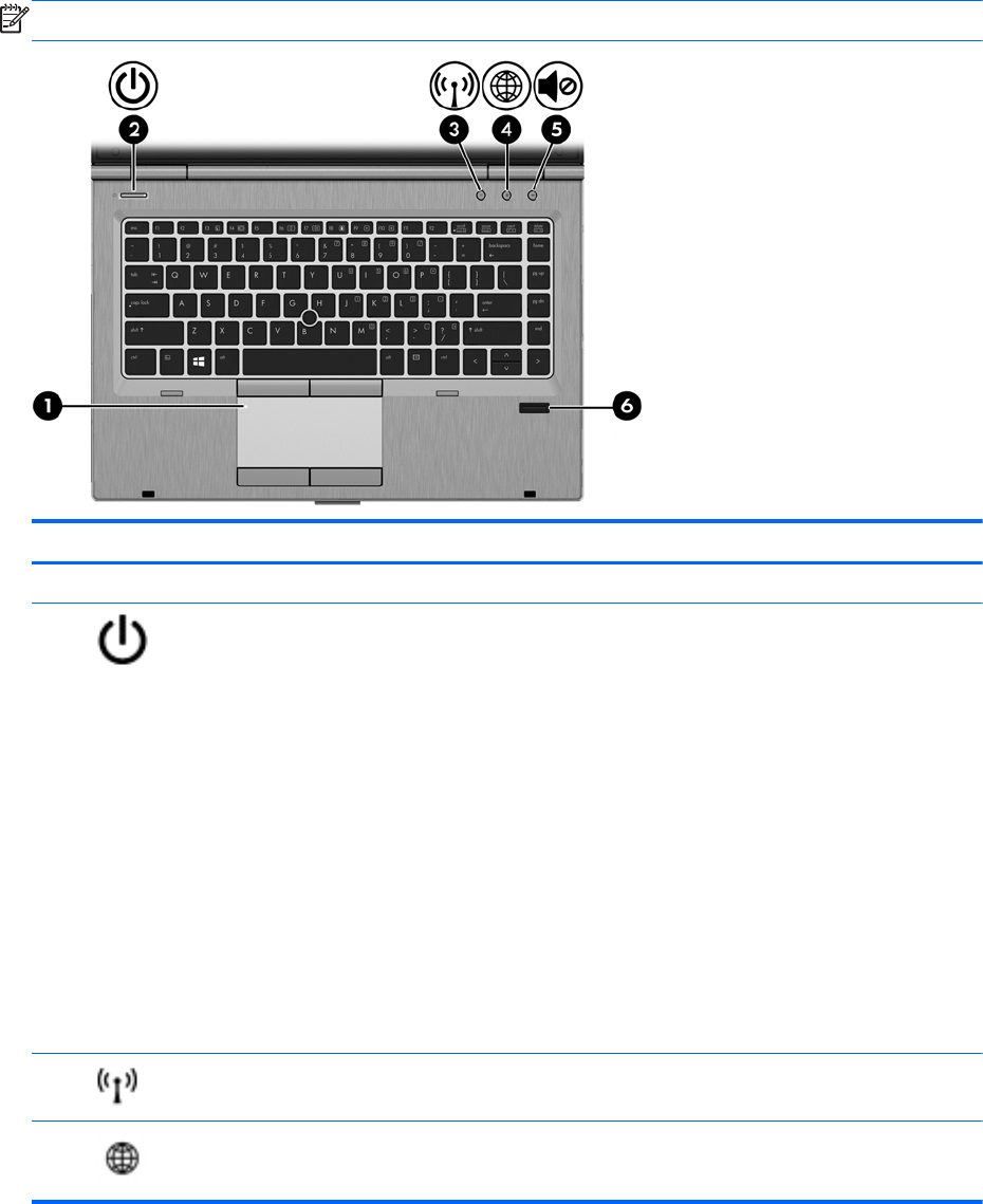 (1) Сенсорлы тақтаны қосу/өшіру түймешігі Сенсорлы тақтаны қосады жəне сөндіреді.