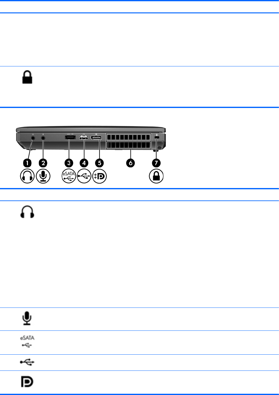 Қауіпсіздік кабелінің ұясы Қосымша қауіпсіздік кабелін компьютерге жалғайды.