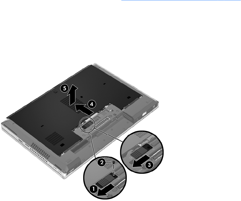 3. Қызмет көрсетуге арналған есікті компьютердің алдыңғы жағына (4) қарай сырғытып, оны