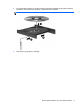 1. Trykk på utløserknappen (1) på dekselet for å løse ut skuffen, og trekk deretter skuffen forsiktig