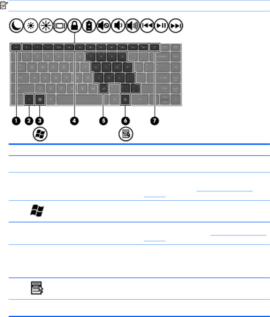 (7) Tasten num lock Aktiverer og deaktiverer det integrerede numeriske tastatur,