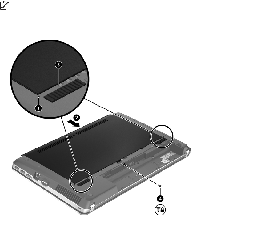 Sæt servicedækslet i efter adgang til hukommelsesmodulslotten, harddisken, mærkaten med