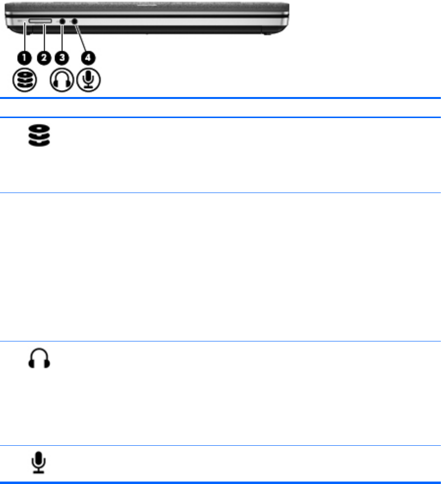 Jack för ljudingång (mikrofon) Ansluter en extra datorheadsetmikrofon, stereoljudmikrofon