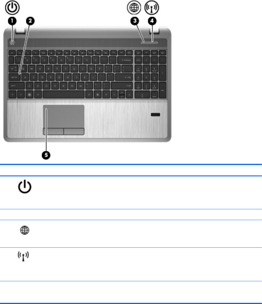 (5) TouchPad-lysdiode ● Gul: TouchPad'en er slukket.