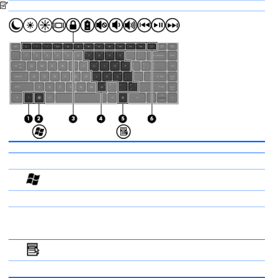 (6) Tasten num lock Aktiverer og deaktiverer det integrerede numeriske