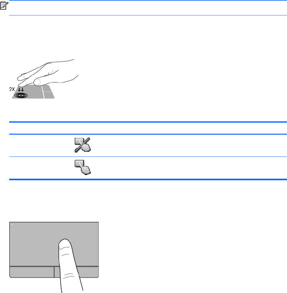 Hvis du vil slukke og tænde for TouchPad'en, skal du trykke hurtigt to gange på TouchPad'ens tænd/