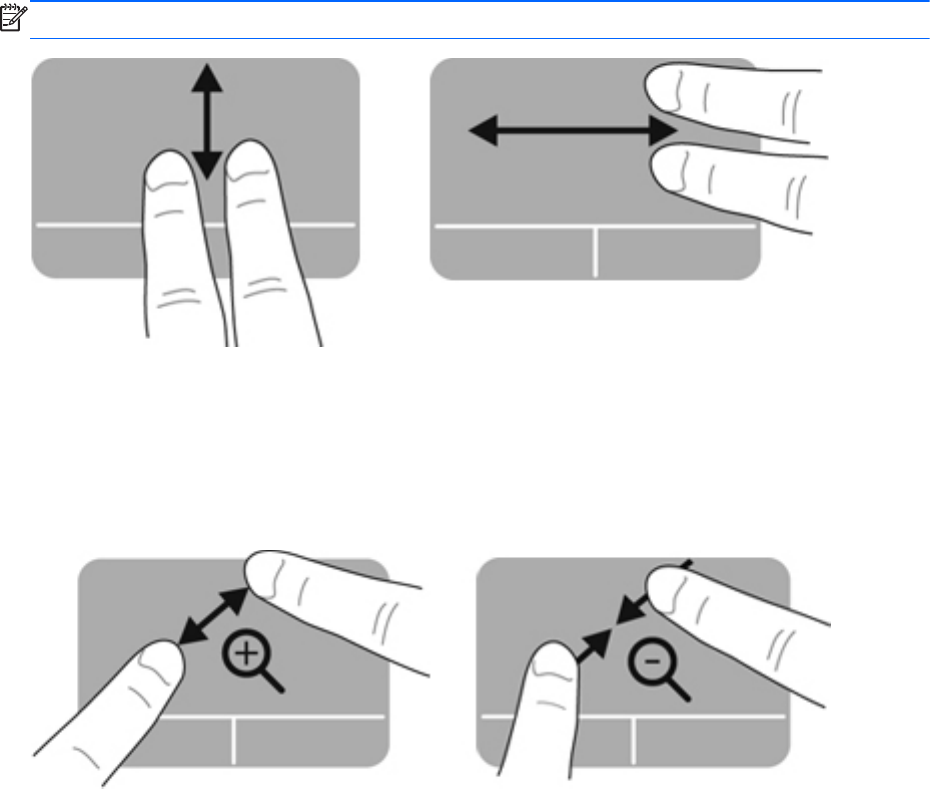 du vil rulle, skal du anbringe to fingre let adskilt på TouchPad'en og derefter trække dem op, ned eller