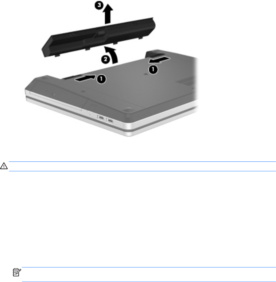 2. Skub batteriet op (2), og fjern batteriet fra batterirummet (3).