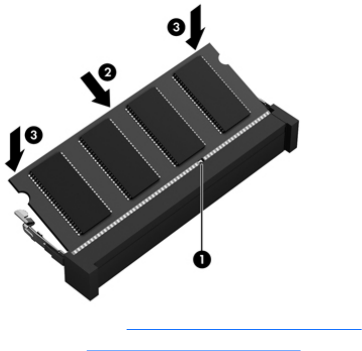 c. Tryk forsigtigt ned på hukommelsesmodulet (3), idet du trykker på både venstre og højre