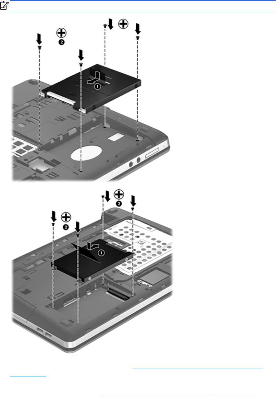 3. Substitua os quatro parafusos da unidade de disco rígido (2).