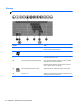 (1) Tlačítko zapnutí/vypnutí zařízení TouchPad Zapíná a vypíná zařízení TouchPad.