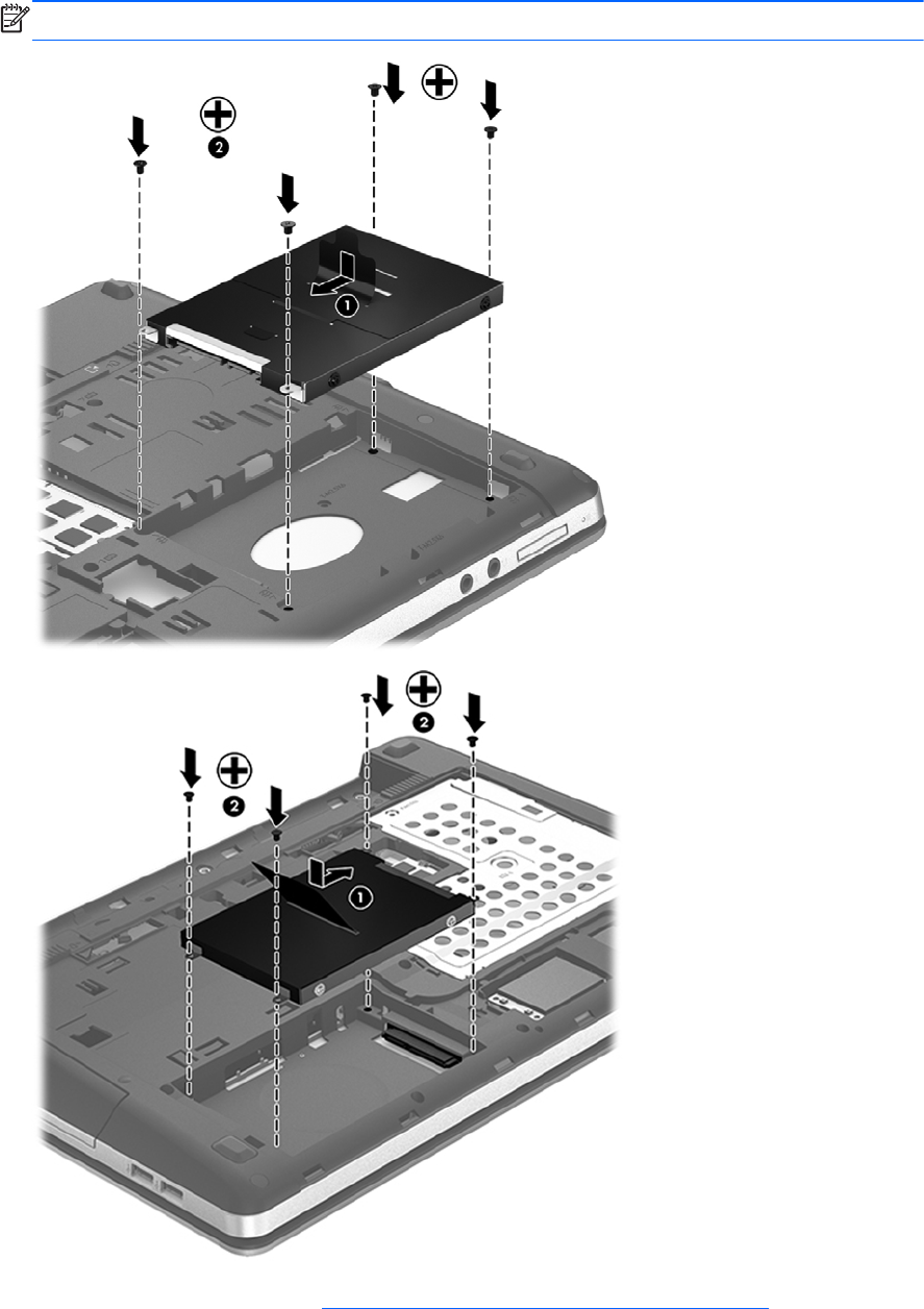 3. Paigaldage neli kõvaketta kruvi tagasi (2).