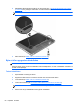 1. Luta serviceluckan nedåt så att flikarna på den riktas in mot frikopplingsmekanismerna på datorn