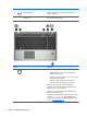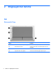 (1) Dokunmatik Yüzey açma/kapatma düğmesi Dokunmatik Yüzey'i açar ve kapatır.
