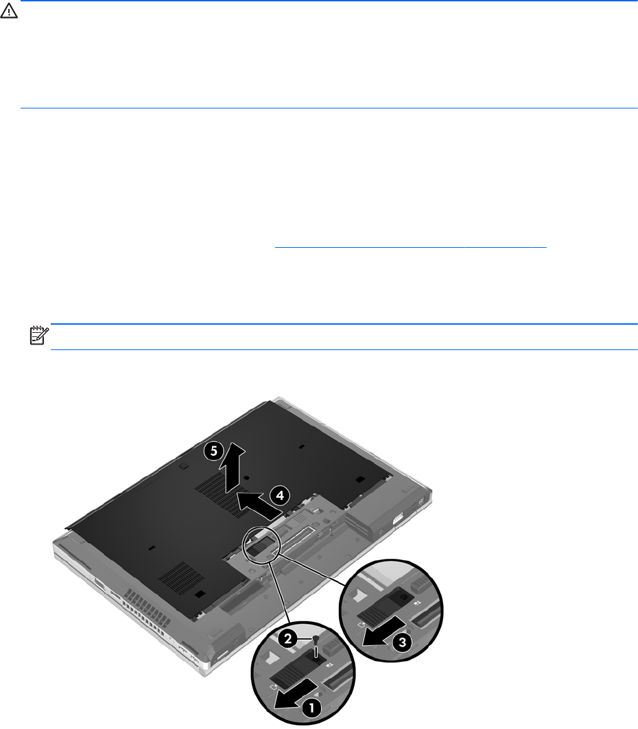 2. Okrenite ležište baterije prema sebi te gurnite zasun za otpuštanje servisnih vratašca (1) ulijevo,