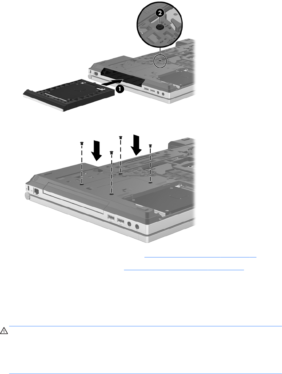 1. Umetnite tvrdi disk (1) u ležište za nadogradnju te zategnite vijak ležišta za nadogradnju (2).