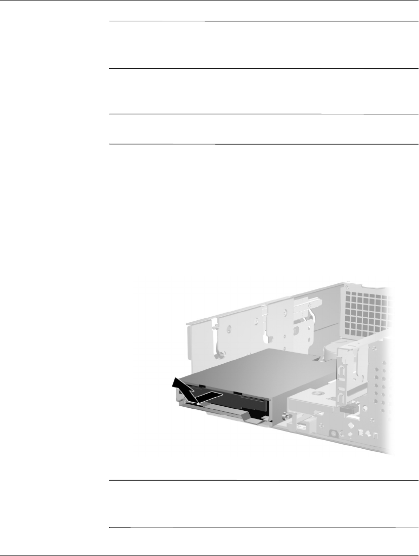 可选的软盘驱动器位于光驱的下方。要卸下软盘驱动器,请执