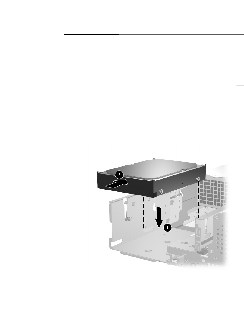 后,将驱动器朝计算机的背面滑动 2,以便将驱动器固定在