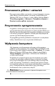 Rozpocz cie pracy Aby wyłączyć komputer, należy nacisnąć przycisk zasilania i przytrzymać go w tej pozycji przez cztery sekundy. Jednakże ręczne wyłączenie komputera powoduje pominięcie stanu wstrzymania i może doprowadzić do utraty danych. W przypadku niektórych modeli przycisk zasilania można skonfigurować do pracy w trybie włączania/wyłączania, uruchamiając program Computer Setup.
