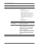 Tietokoneen asetusohjelma (F10) Tietokoneen asetukset (Jatkuu) Otsake Vaihtoehto Kuvaus Turva (jatkuu) Embedded Security (Integroitu suojaus) Tämän vaihtoehdon avulla voit: • Käynnistää/poistaa käytöstä integroidun turvalaitteen. • Palauta laite tehdasasetuksiin. Toimintoa voidaan käyttää vain tietyissä malleissa. Katso lisätietoja Pöytäkoneiden hallintaoppaasta, joka on Documentation CD -levyllä.
