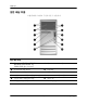 제품 구성 앞면 패널 부품 모델에 따라 드라이브 구성이 다를 수 있습니다. 앞면 패널 부품 1 광 드라이브(CD-ROM, CD-R/RW, DVD-ROM, DVD+R/RW 또는 CD-RW/DVD 콤보 드라이브) 7 광 드라이브 꺼내기 버튼 2 광 드라이브 작동 표시등 8 전원 버튼 3 디스켓 드라이브(선택 사양) 9 전원 표시등 4 디스켓 드라이브 작동 표시등(선택 사양) - 하드 드라이브 작동 표시등 5 디스켓 꺼내기 버튼(선택 사양) q 헤드폰 잭 6 USB(범용 직렬 버스) 포트 w 마이크 연결단자 1–2 www.hp.
