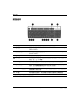 產品功能 鍵盤組件 1 功能鍵 根據所使用的軟體應用程式而執行特殊的功能。 2 編輯鍵 包括下列按鍵:INSERT、HOME、PAGE UP、DELETE、END 和 PAGE DOWN。 3 狀態指示燈 顯示電腦和鍵盤的設定狀態 (NUM LOCK、CAPS LOCK 和 SCROLL LOCK)。 4 數字鍵 功能類似計算機鍵台。 5 方向鍵 用來瀏覽文件或網站。這些按鍵能讓您使用鍵盤 (而非滑鼠)來 向左、右、上、下移動。 6 CTRL 鍵 與其他鍵組合使用;其效果視您所使用的應用程式軟體而定。 7 應用程式鍵 * 用來 (如滑鼠右鍵般)開啟 Microsoft Office 應用程式的快顯功 能表。在其他軟體應用程式中可執行其他功能。 8 Windows 標誌鍵 * 用來開啟 Microsoft Windows 的 「開始」功能表。與其他鍵組合 使用以執行其他功能。 9 ALT 鍵 與其他鍵組合使用;其效果視您所使用的應用程式軟體而定。 * 適用於特定地理國家 / 地區的按鍵。 1–4 www.hp.