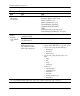 Computer Setup(F10) 유틸리티 Computer Setup(계속) 제목 옵션 설명 Integrated Peripherals (통합 주변 장치) South OnChip PCI Device (사우스 온칩 PCI 장치) 다음을 수행할 수 있습니다. • 온칩 IDE 컨트롤러의 활성화/비활성화 • 내장 AC97 오디오의 자동 설정 또는 비활 성화 • 다음으로 내장 칩 SATA 설정: • SATA Disabled(SATA 비활성화) • IDE Controller (non-RAID)(IDE 컨트롤러(비 RAID)) • RAID Controller(RAID 컨트롤러) • 다음을 활성화/비활성화: • Onboard LAN(내장 LAN) • Onboard LAN Boot ROM(내장 LAN 부트 ROM) ✎ OnChip USB Controller (온칩 USB 컨트롤러) USB 컨트롤러를 활성화/비활성화합니다.