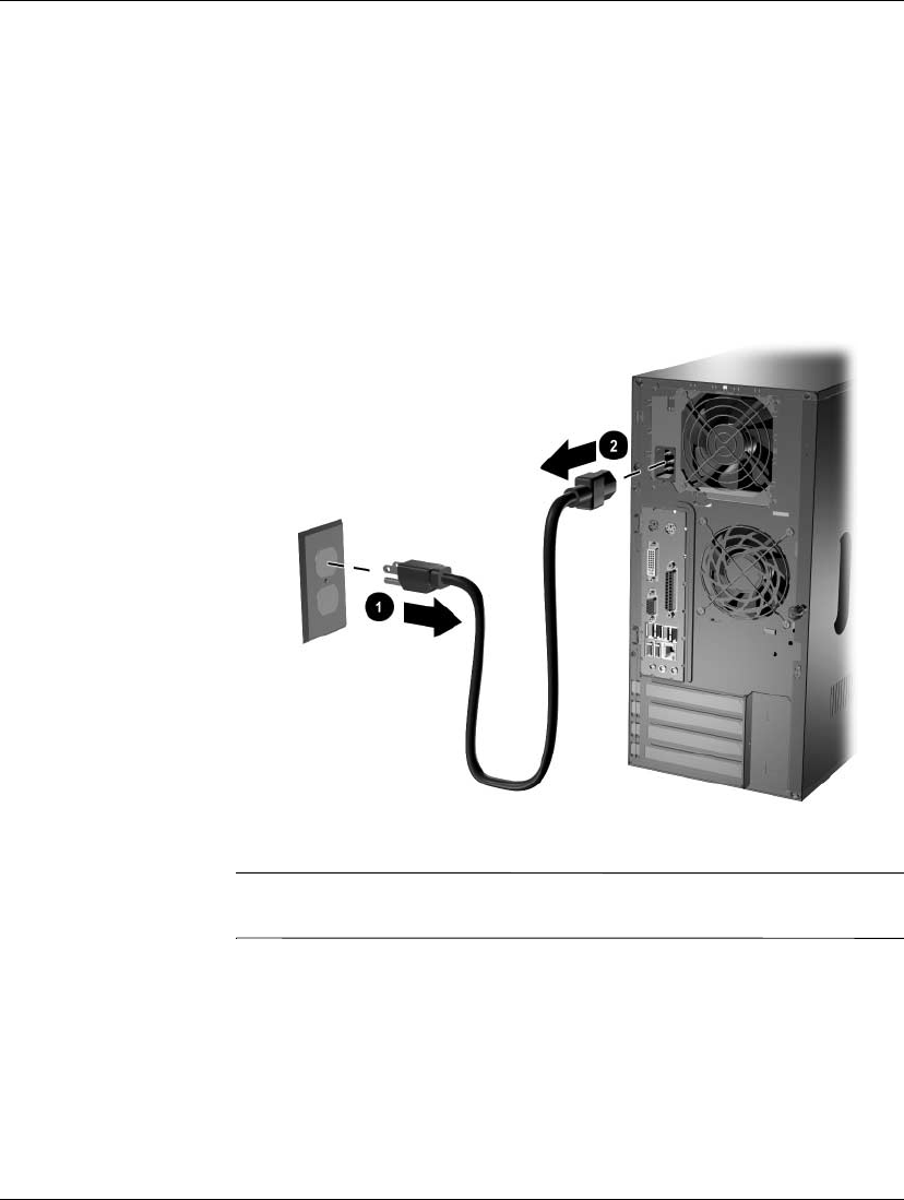 2. Irrota virtajohto pistorasiasta 1 ja tietokoneesta 2 ja ulkoiset