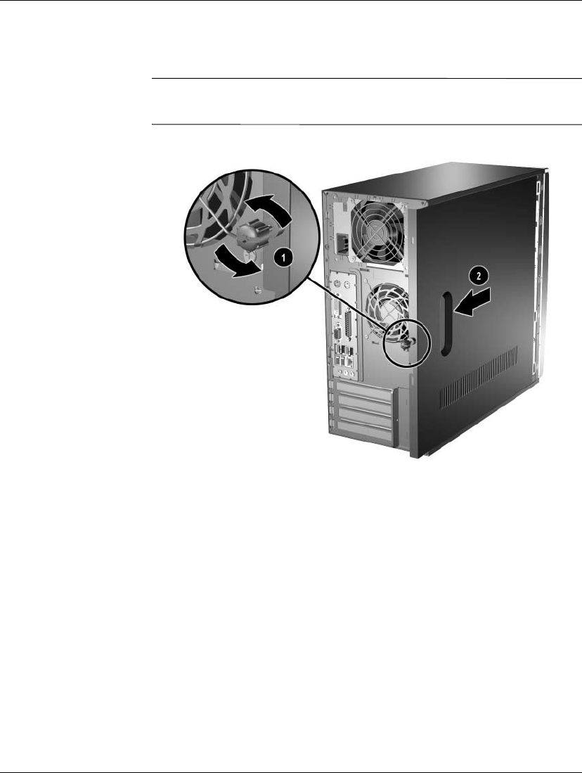 3. Irrota tietokoneen takana oleva siipiruuvi 1, liu’uta huoltopaneelia