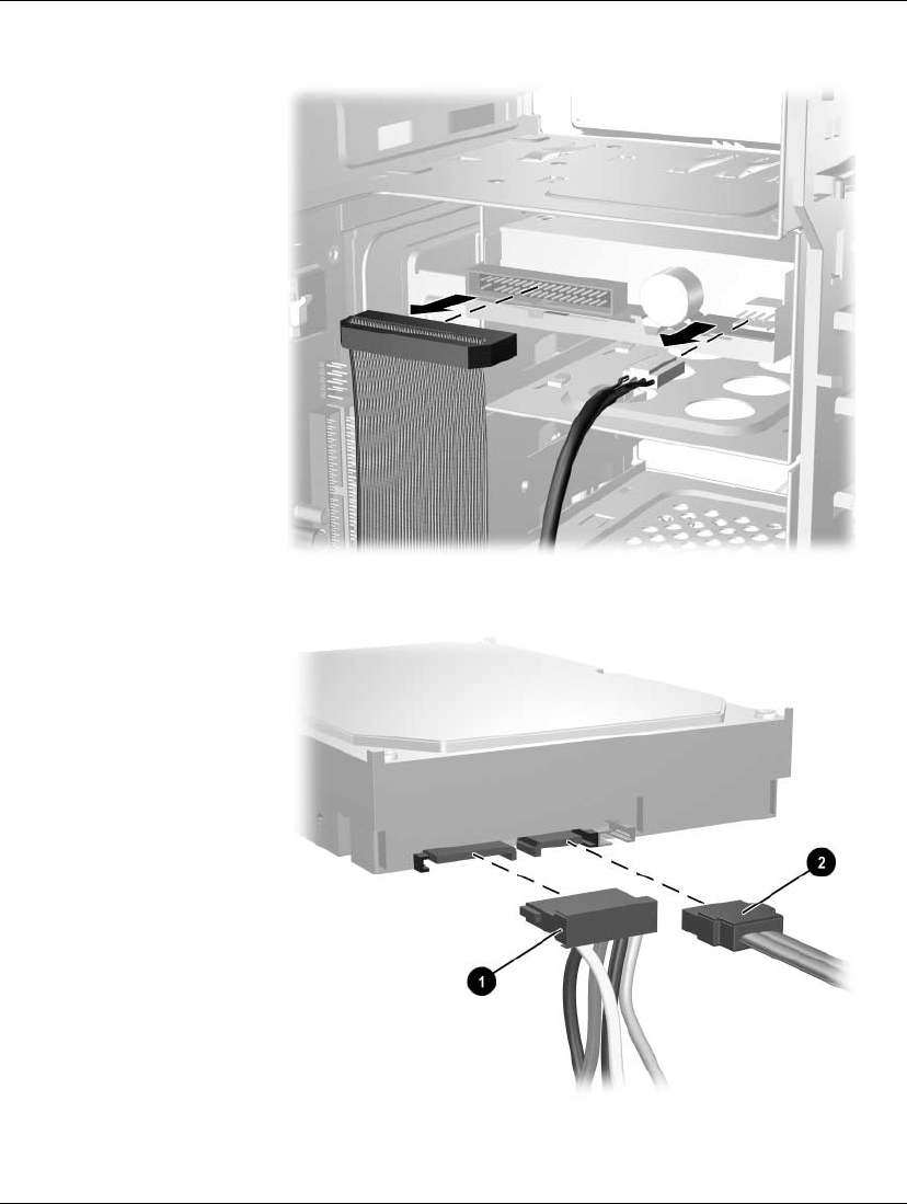 Kiintolevyn virta- 1 ja datakaapelien 2 irrottaminen