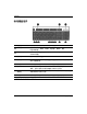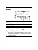 产品特点 前面板组件 驱动器配置可能因机型而异。 前面板组件 1 光驱 (CD-ROM、 CD-R/RW、 DVD-ROM、 DVD-R/RW 或 CD-RW/DVD 组合驱动器) 7 光驱弹出按钮 2 光驱活动指示灯 8 电源按钮 3 软盘驱动器 (可选) 9 开机指示灯 4 软盘驱动器活动指示灯 (可选) - 硬盘驱动器活动指示灯 5 软盘弹出按钮 (可选) q 耳机插孔 6 USB (通用串行总线)端口 w 麦克风连接器 1–2 www.hp.